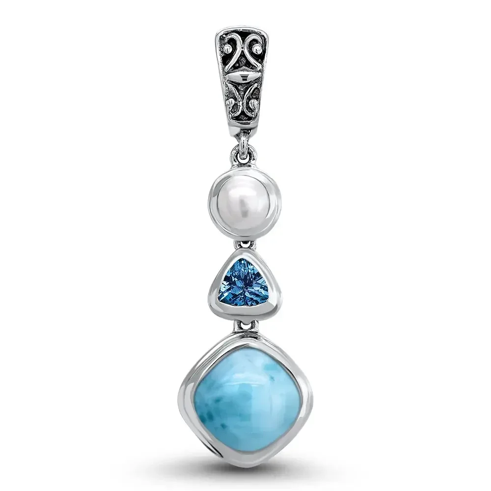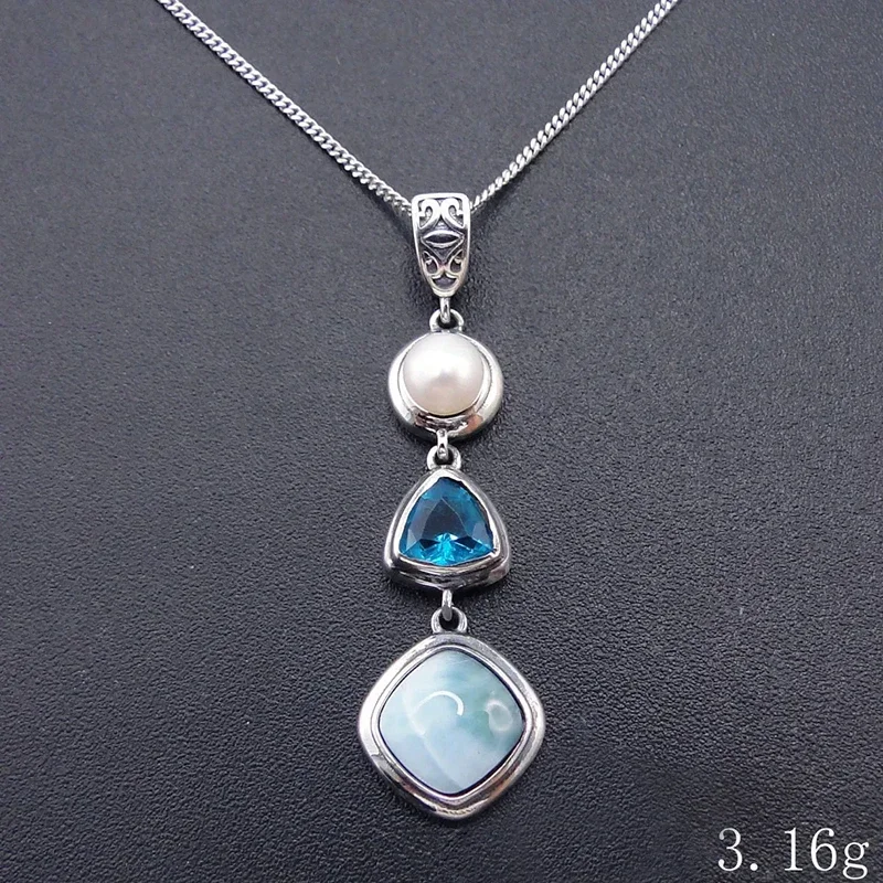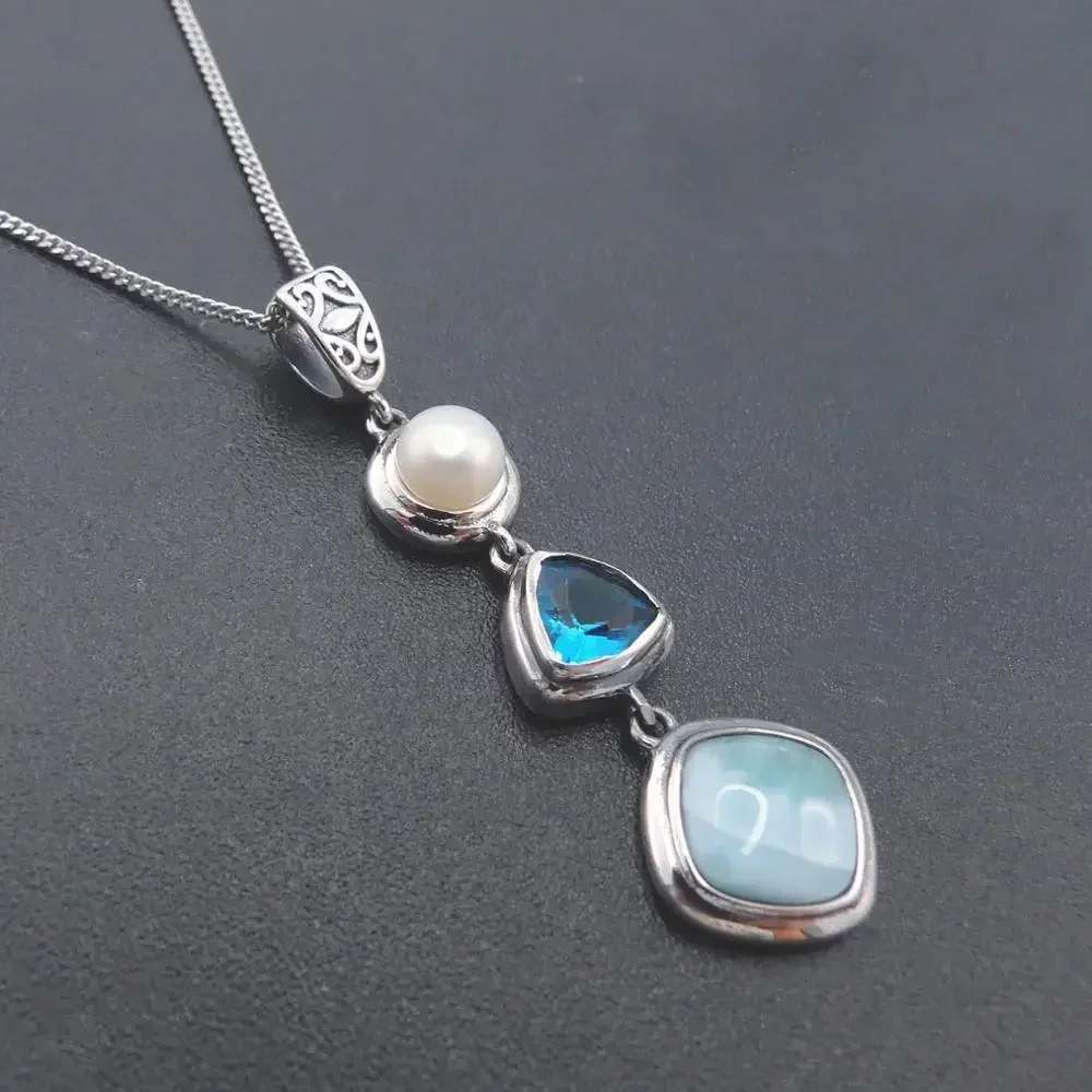 1 Pcs Silver Color Handmade Necklace Pendant Unique Beautiful Blue Natural Sea Pattern And Pearl Pendants Jewelry