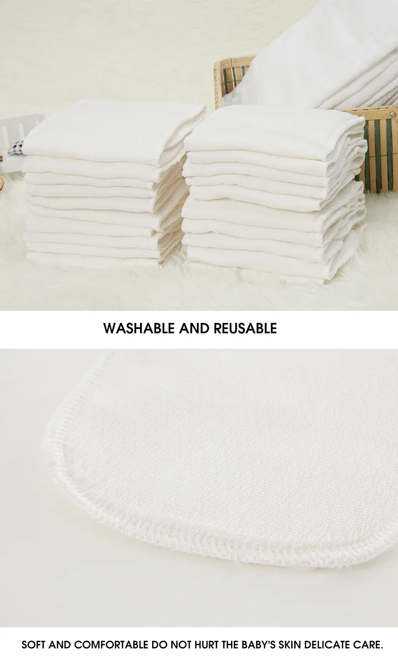 2/5pcs/10pcs Baby Reusable Diapers Washable Ecological Nappies Inserts Cotton Cloth Diapers for Children Breathable Absorbent