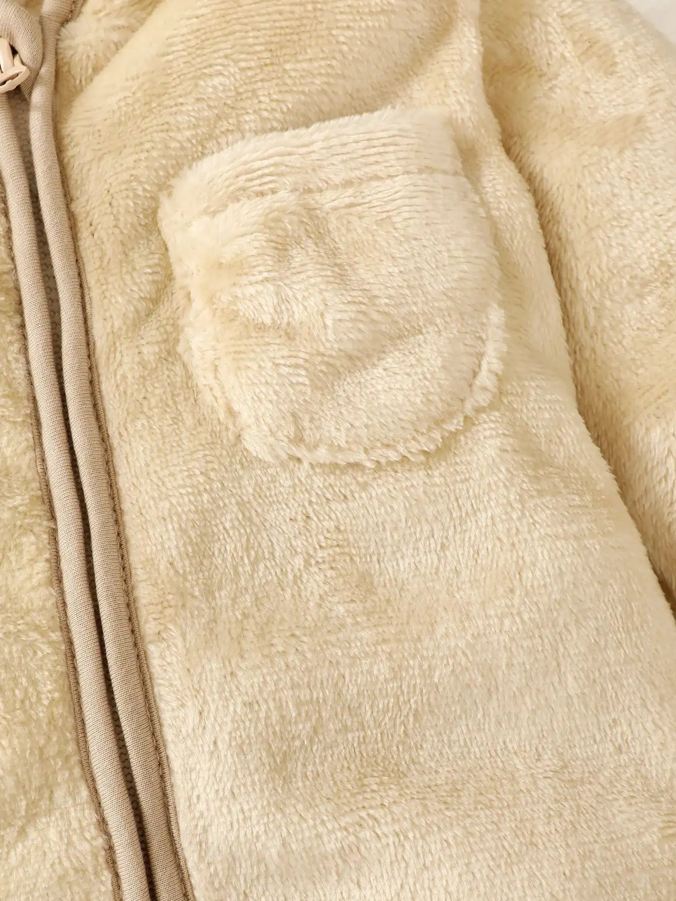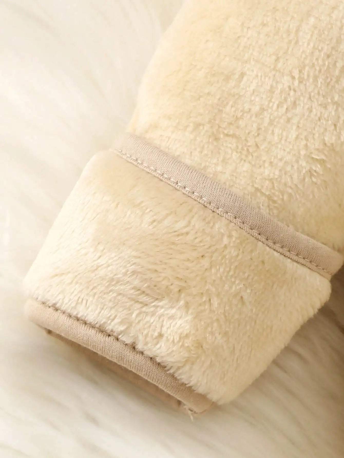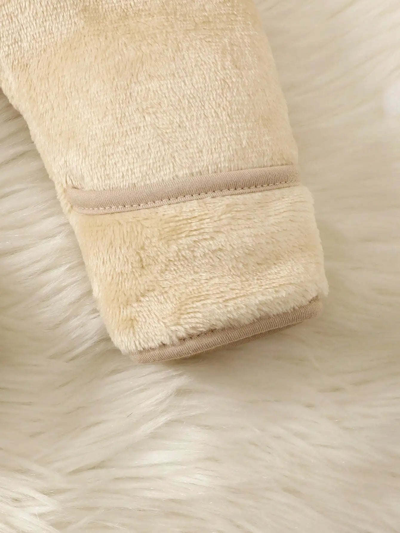 Autumn apricot baby boy cute jumpsuit - solid color simple long sleeve zipper cardigan cute fluffy bag hand wrapped feet onesie!