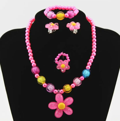 Pearl Pink Flower Jewelry Set for Girls | Necklace Ring Earring Bracelet | USA