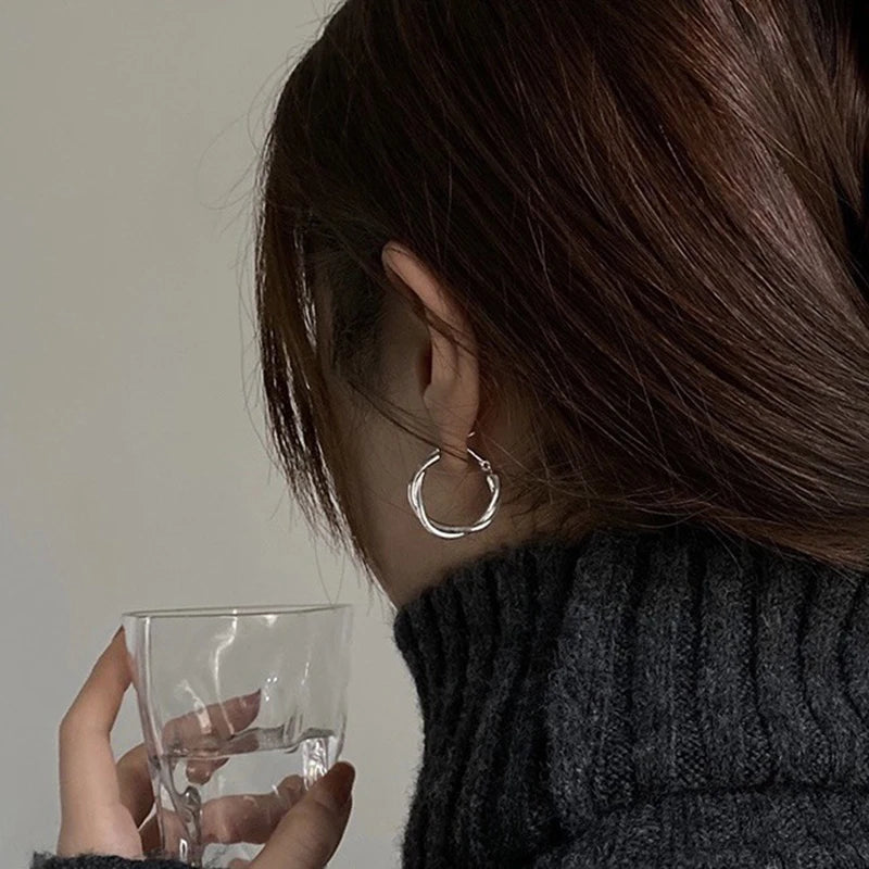 These stunning twisted weaving metal hoop earrings feature a vintage geometric design. Perfect statement jewelry for 2025!