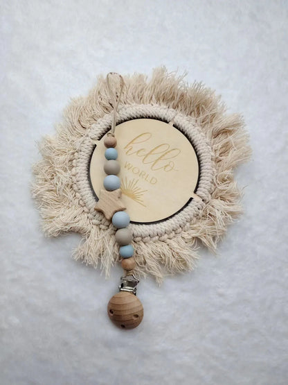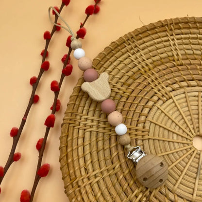 Custom name wooden pacifier chain - silicone bead dummy holder!