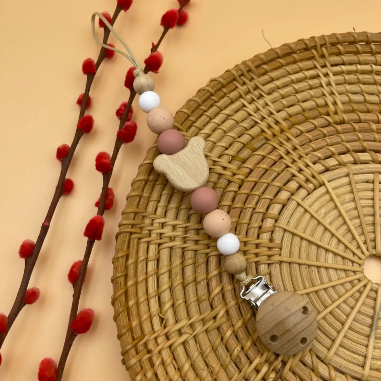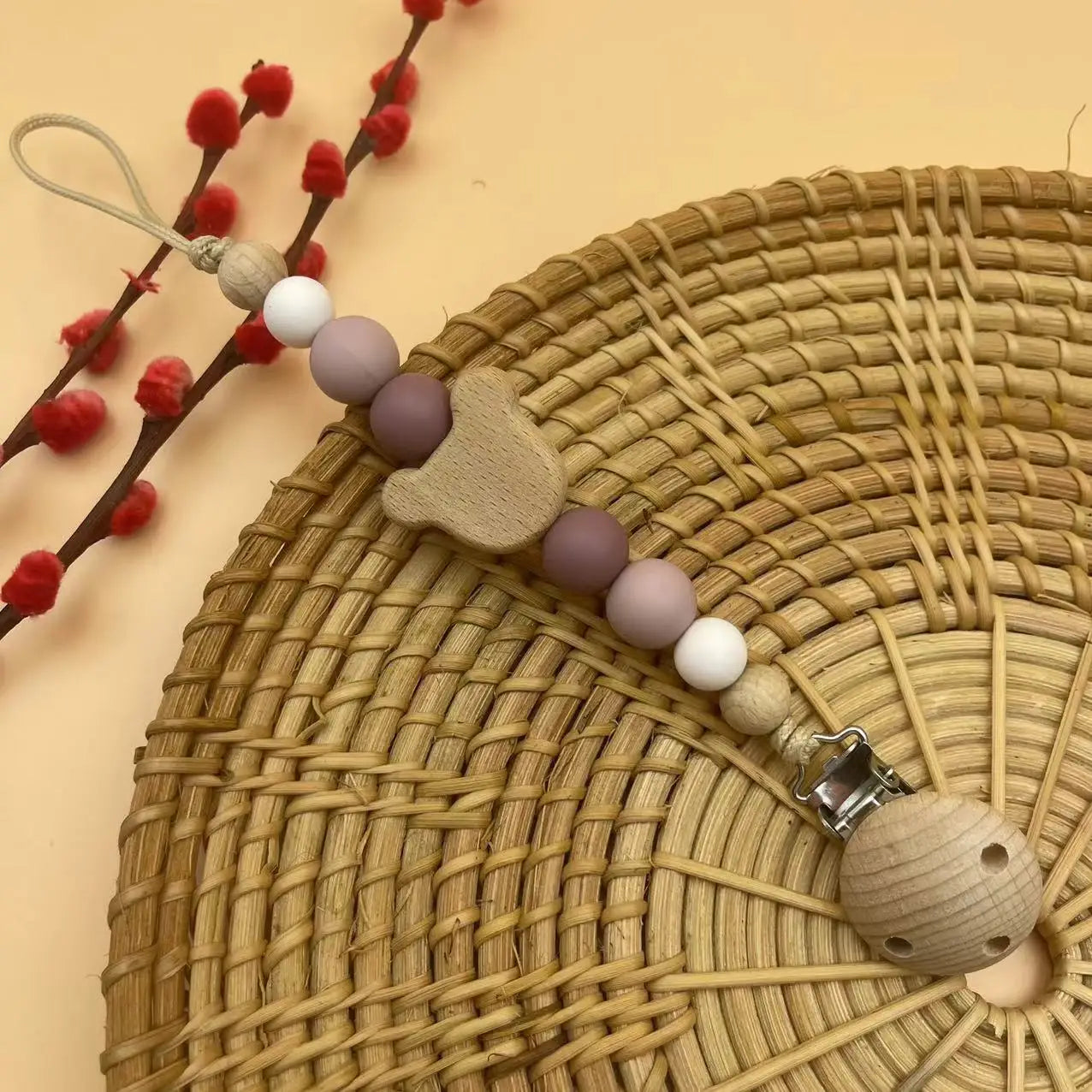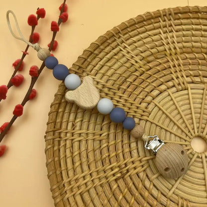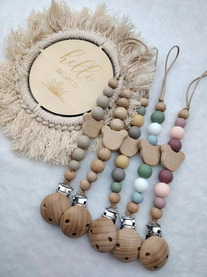 Custom Name Wooden Pacifier Chain | Silicone Bead Dummy Holder | USA Australia
