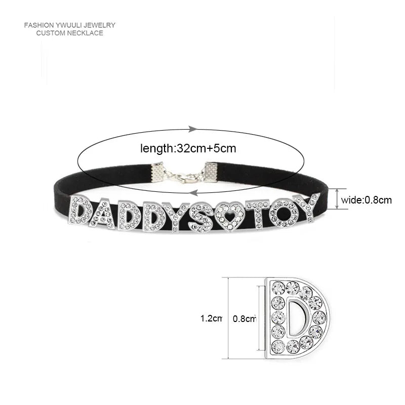 Fashion Rhinestone Letter DADDYS TOY Choker Necklace for Women Girls Korean Leather Collar Custom Personalized Sexy Neck Jewelry