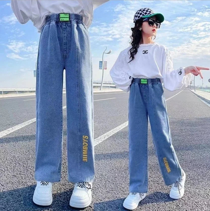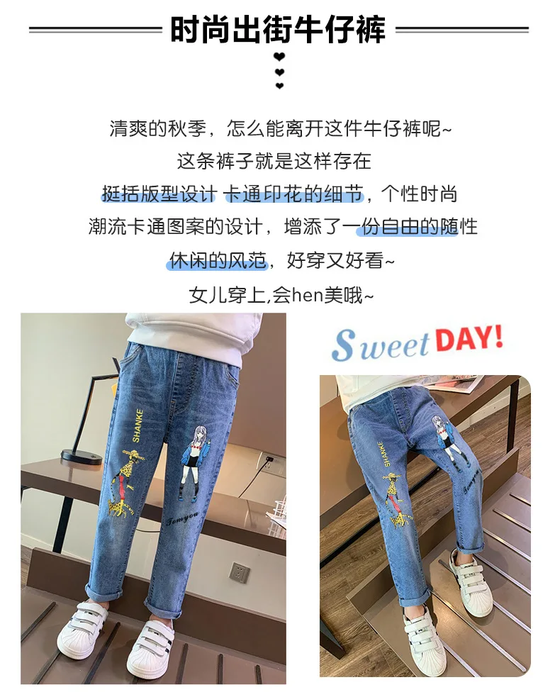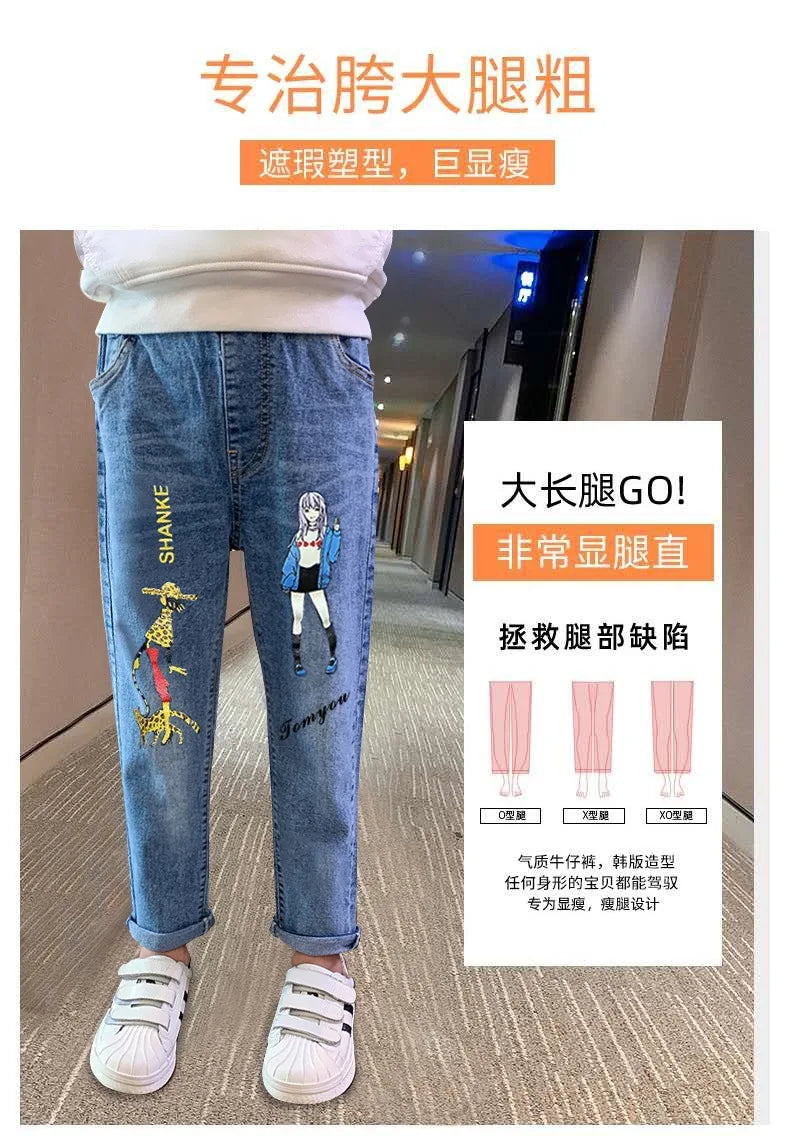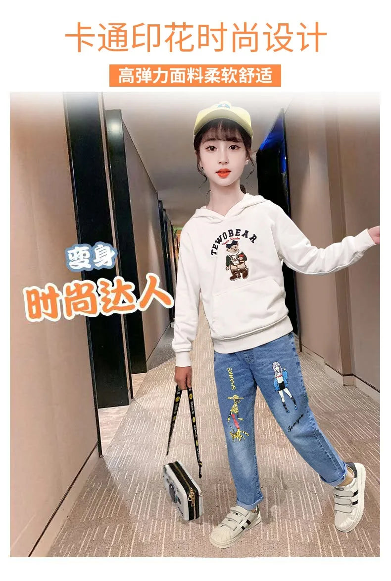 Girls Jeans Children's Clothes Kids Cartoon Printed Elastic Waist Denim Pants 2022 Spring 3 To 12Yrs Teenagers Trousers