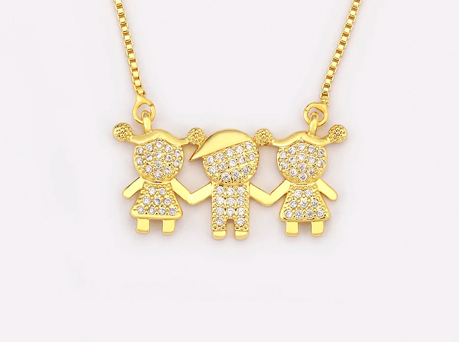 Nidin Gold Plated Family Pendant Necklace | AAA CZ Crystal Kids Jewelry | USA