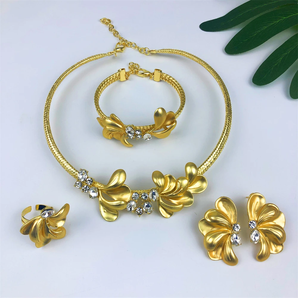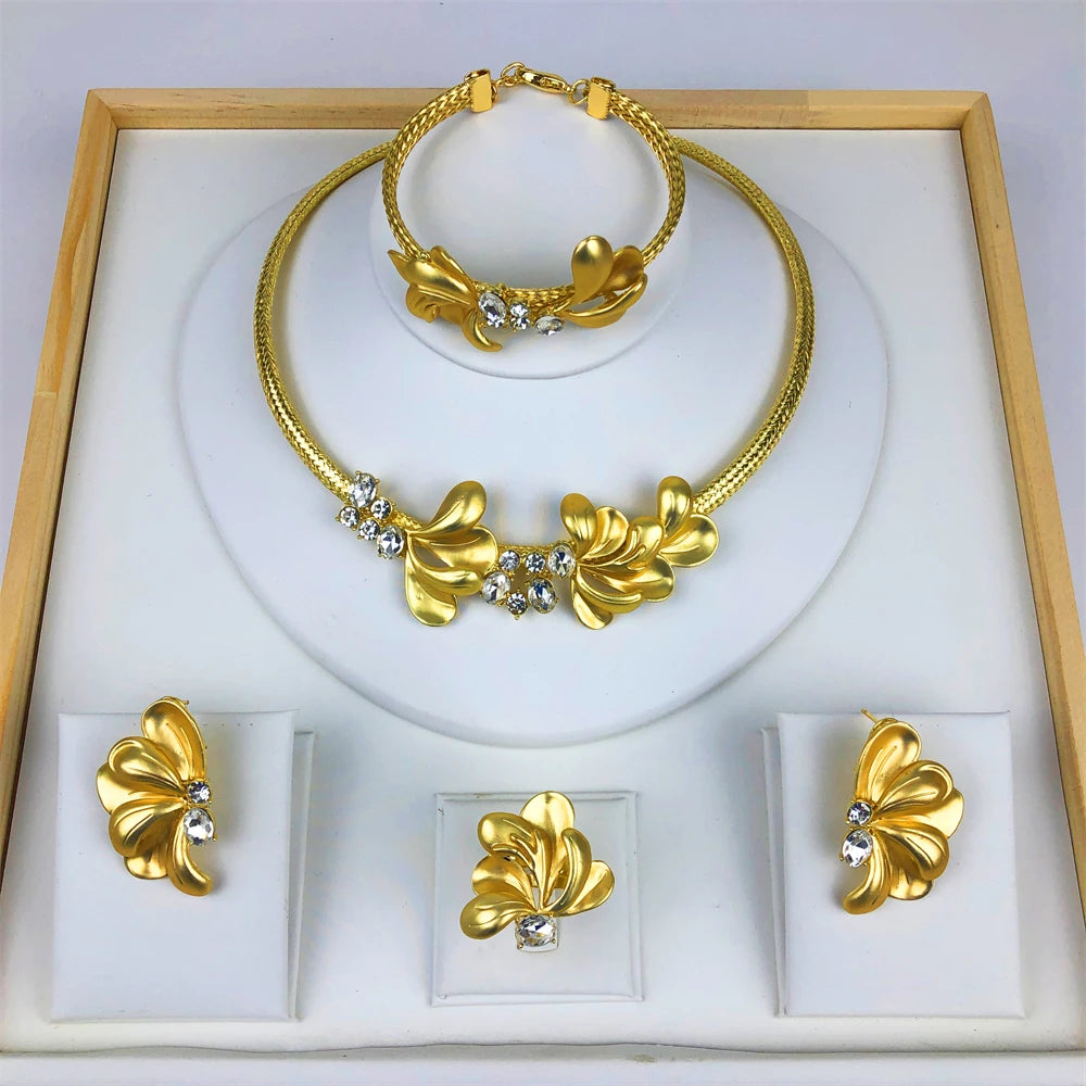 TITI Fashion Jewelry Sets Gold Color Necklace And Earrings For Women 4 Pieces Jewelry Set