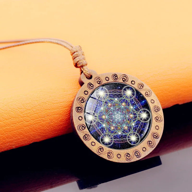 Vintage Archangel Metatron Cube Wooden Necklace | Sacred Geometry