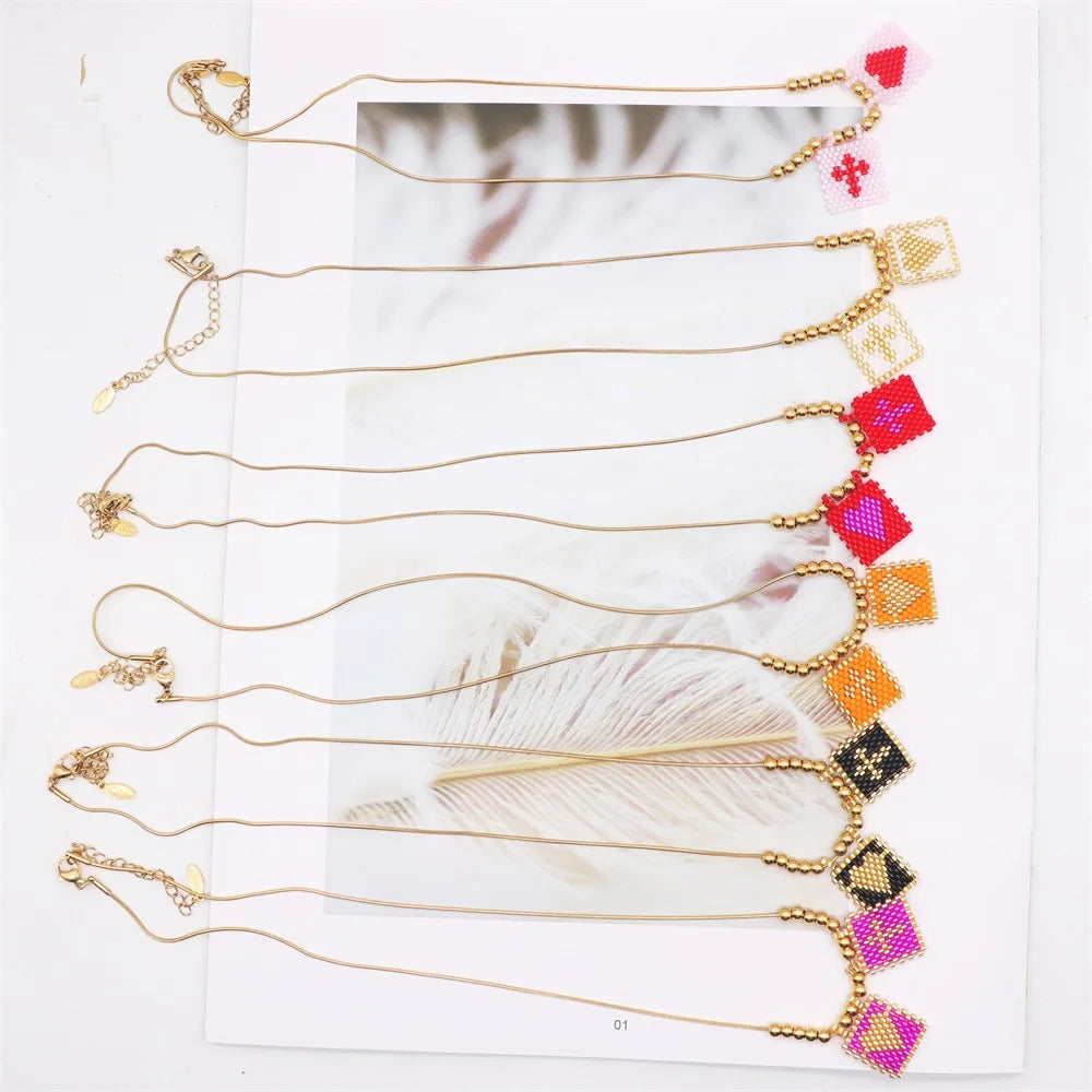 ZHONGVI Miyuki heart cross pendant necklace - gold plated stainless steel chain necklaces jewelry for women girl handmade gift!
